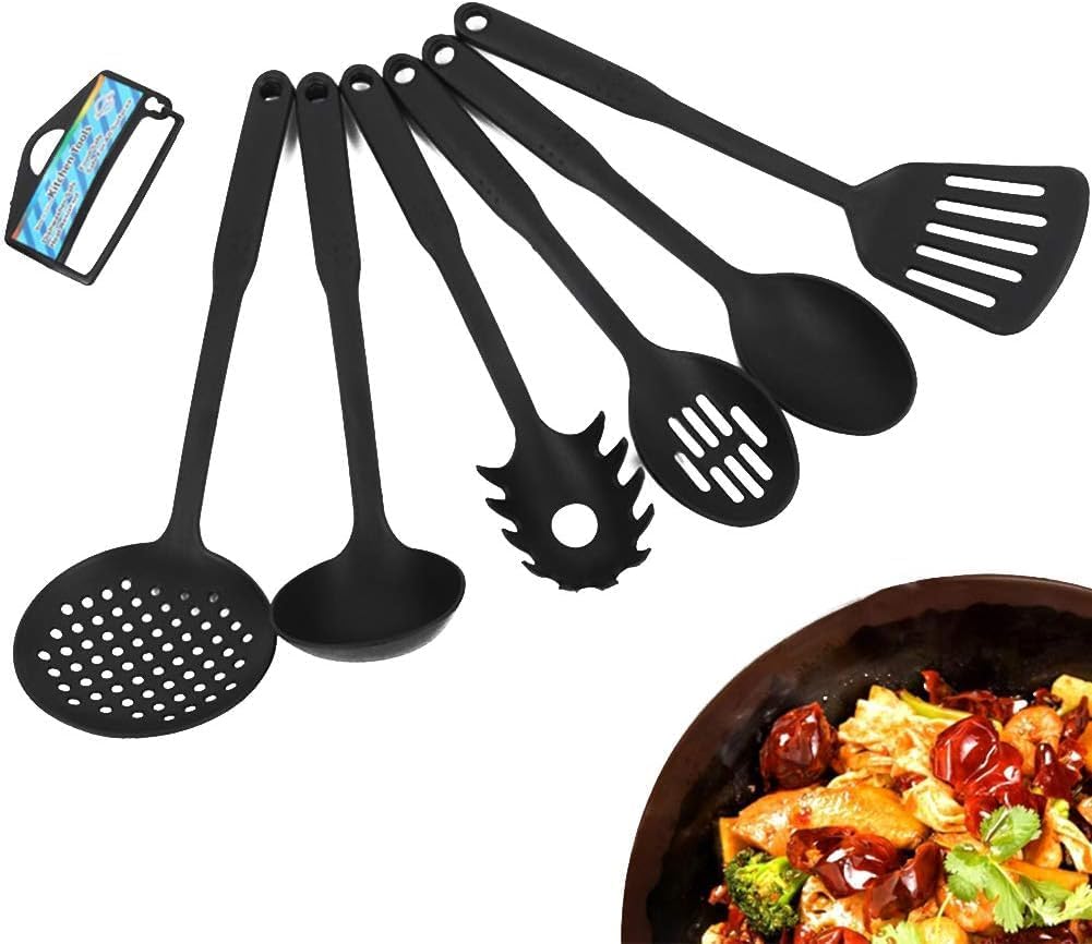 - These cooking utensils have been designed to help you with all your preparations, such as whisk, peeling, cutting, stirring, mixing, roasting, baking, grilling, roasting and serving the perfect dish. The kitchen utensils set includes slotted spatula, deep soup ladle, pasta server, spatula, spoon spatula, slotted spoon. The high quality cooking utensils are dishwasher safe, lightweight and non-stick.