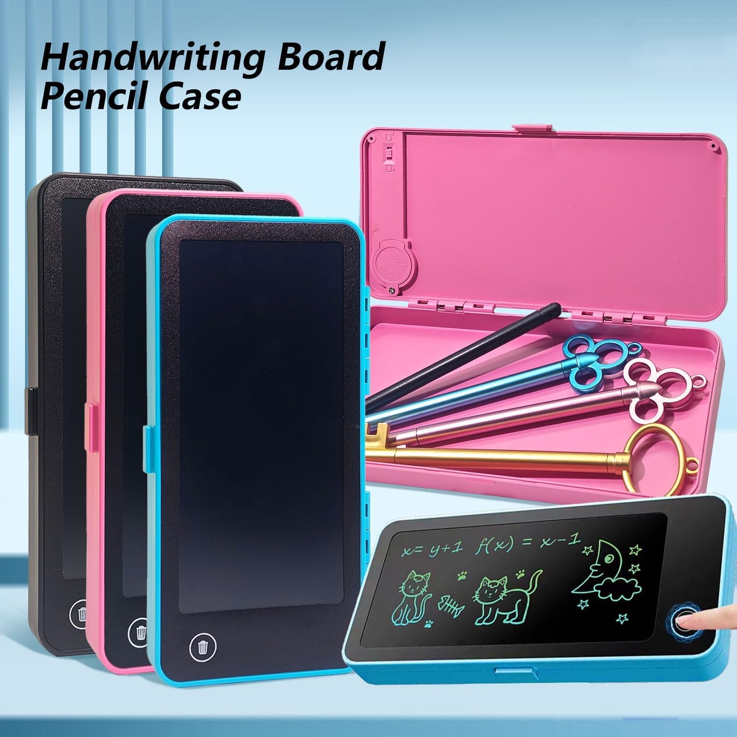 - This unique design pencil case Come with the LCD writing tablet, enriches the function of this pencil box, kids can not only use the LCD writing box to draw, doodle, take notes, and cultivate kid's creative abilities but also can use it to store children's small things like pencils, pens, rulers, Pencil sharpener, paperclip, etc.