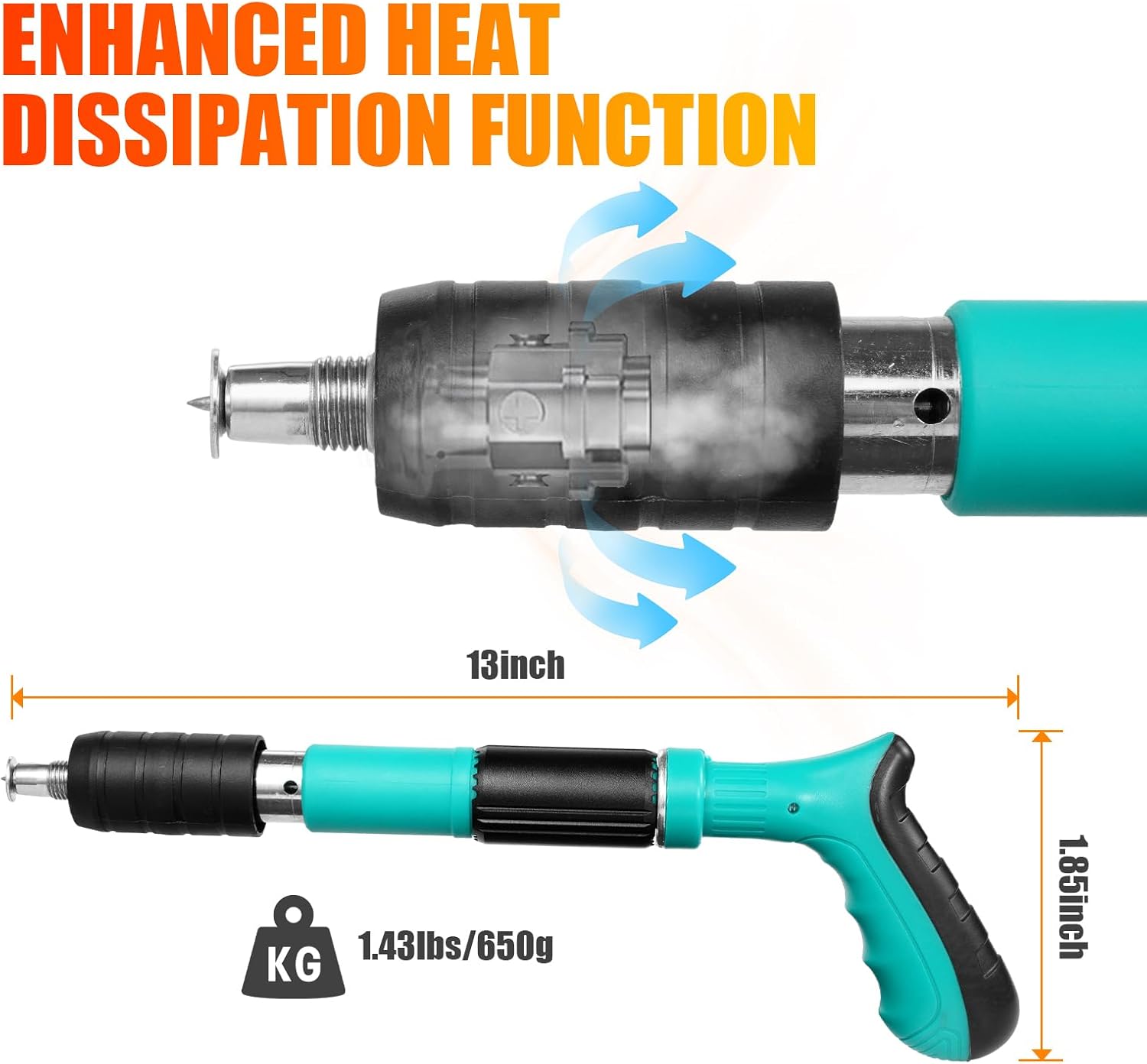 - 【Strong Penetration & Widely Applications】The concrete nail gun with strong penetration force, nail gun for concrete only takes 0.1s to pierce a 3mm steel plate in one step. This nail gun is suitable for nail lengths: 25mm nails. Nail Gun is suitable for camera installation, electric box installation, water and power installation, air conditioning installation and hanging picture frame, multi-function shelf, small junction box, pipeline installation, wire binding, etc.
