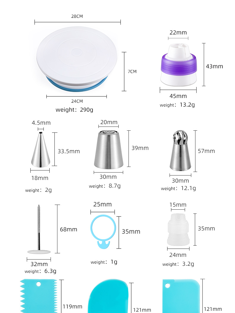 - The professional cake decorating tools included