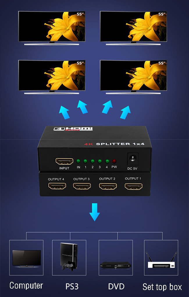 - Device Type: 1x4 port HDMI Splitter